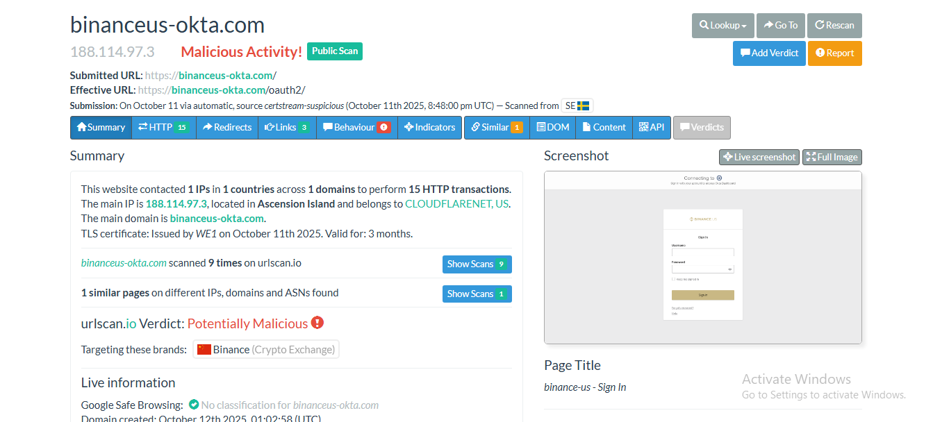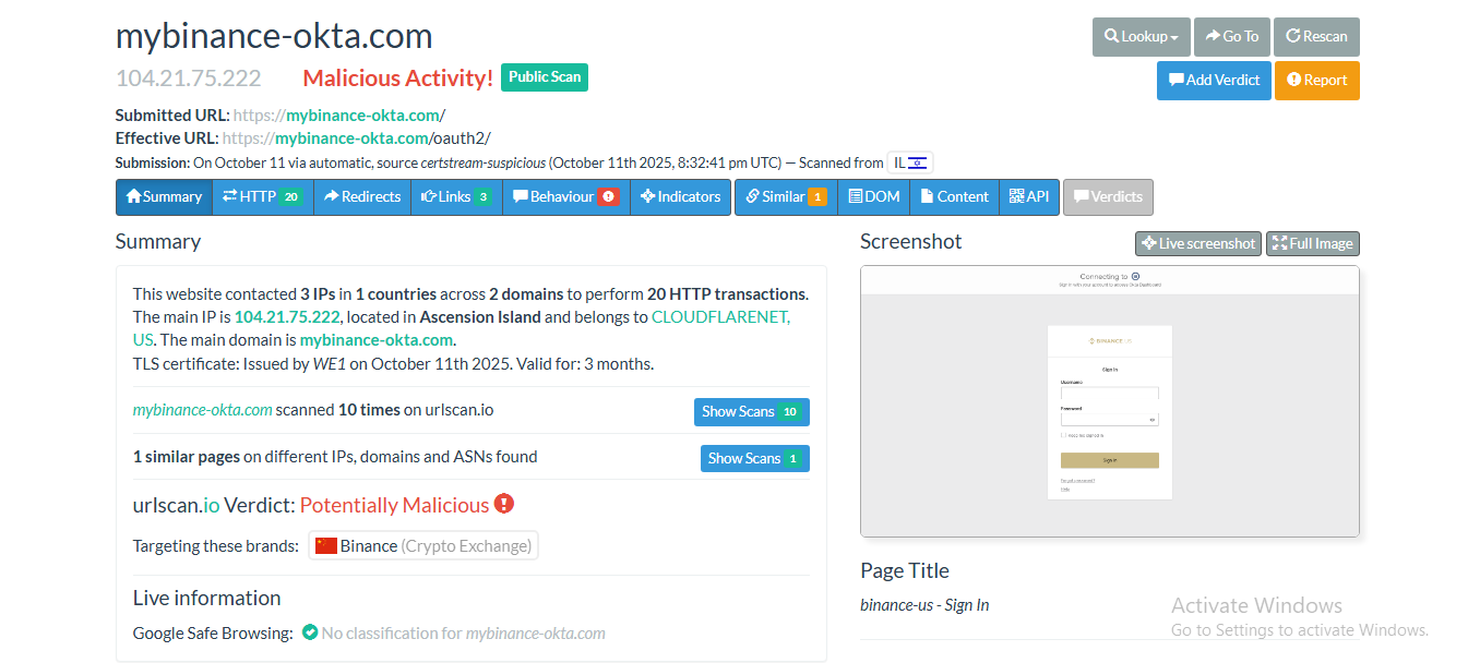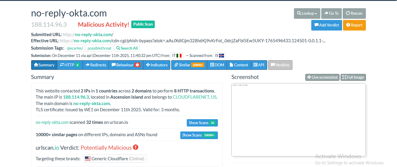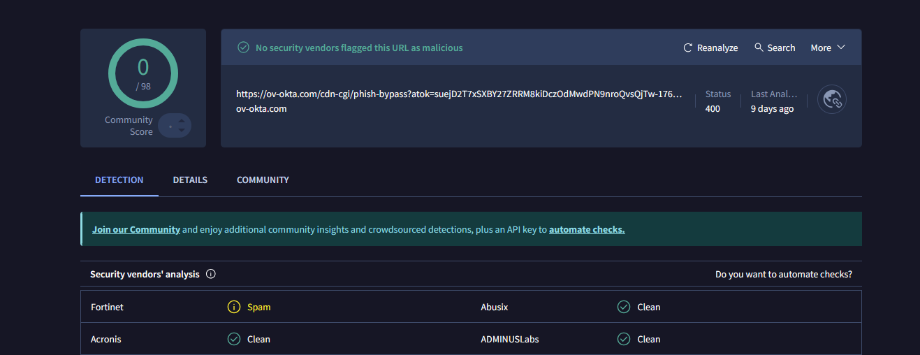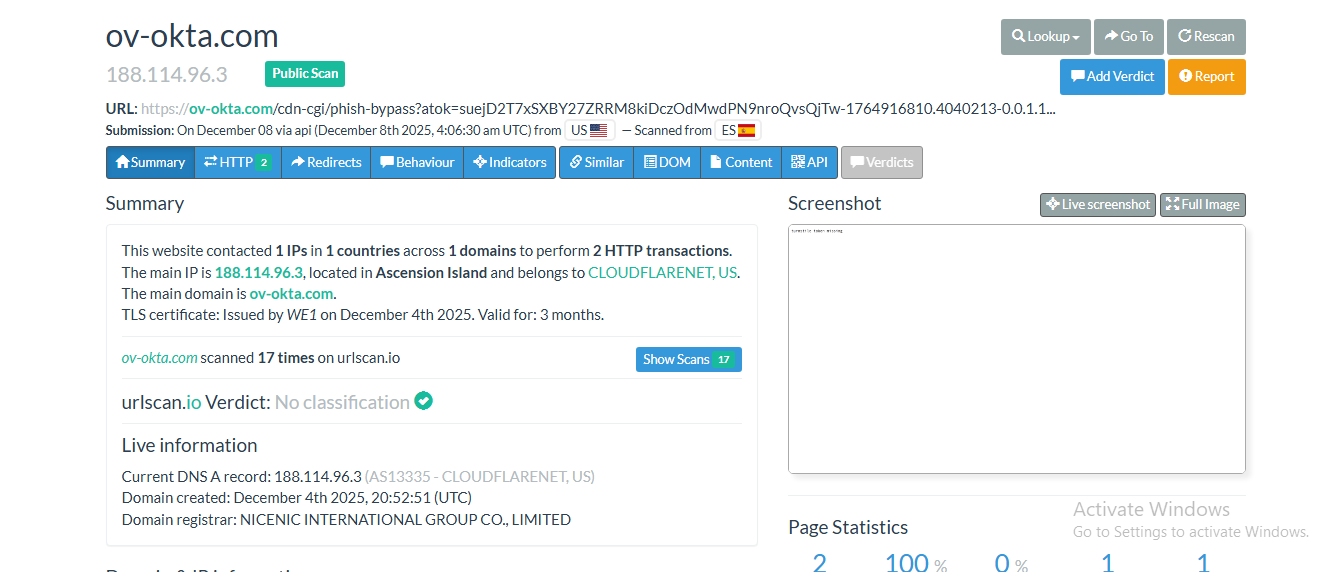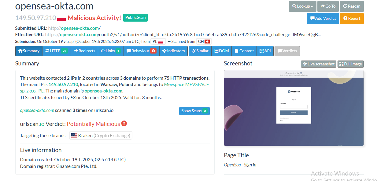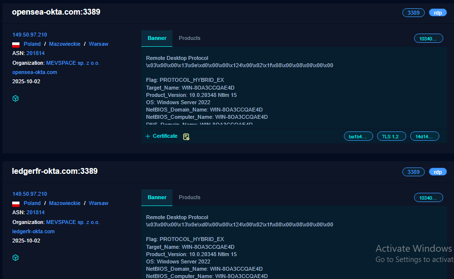 Sharing the same IP address, we identified another domain, opensea-okta[.]com, which exhibits the same structural and behavioral characteristics as other confirmed Scattered Spider infrastructure.