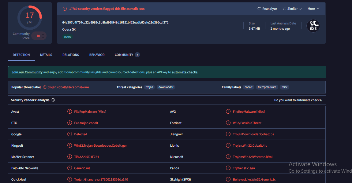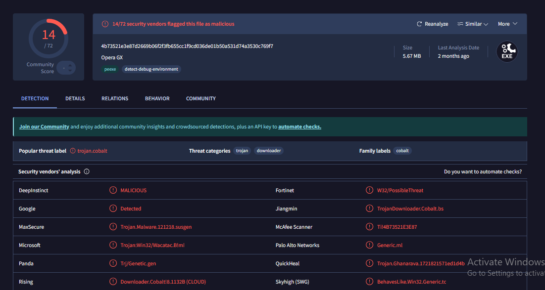 During our investigation, a suspicious file was identified. Subsequent analysis led to the identification of the following Indicators of Compromise: