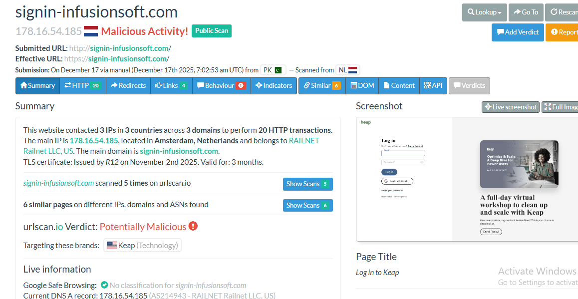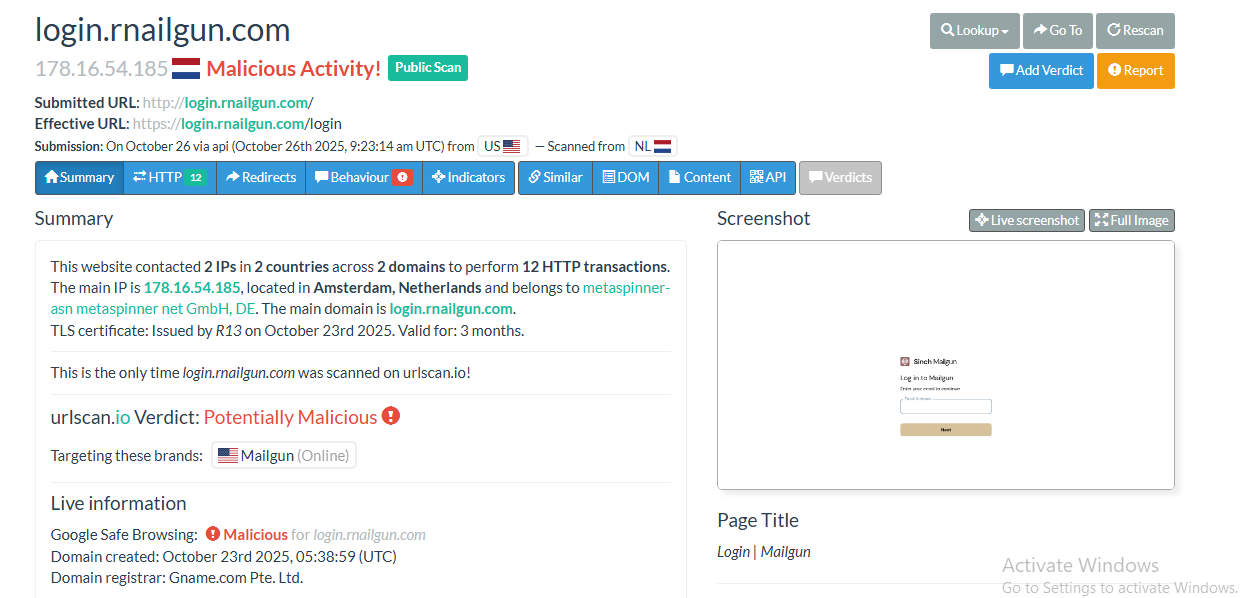 rnailerrlite[.]comβ themis replaced withr+nto mimic "mailerlite" -