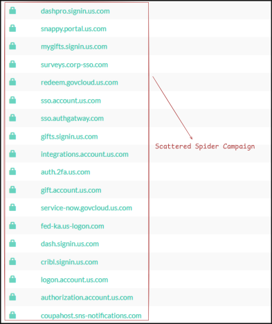 According to multiple published reports, Scattered Spider has been observed using domains that